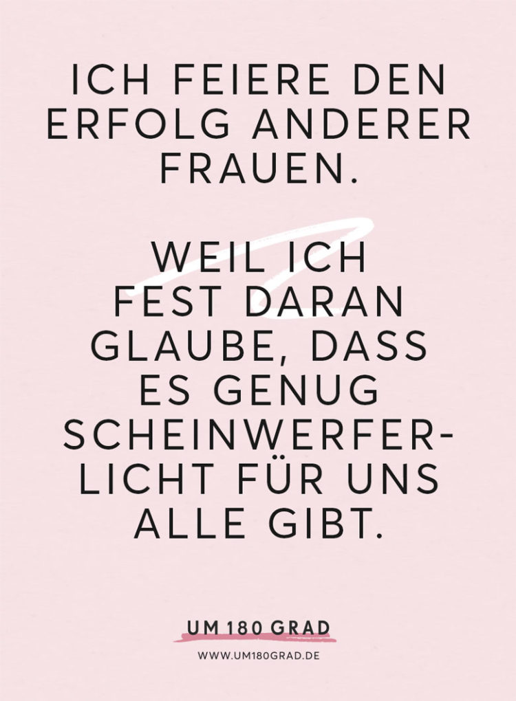 Lass eine andere Frau wissen, dass Du toll findest, was sie tut. Dass sie gut macht, was sie tut. Dass Du hinter ihr stehst und sie anfeuerst.